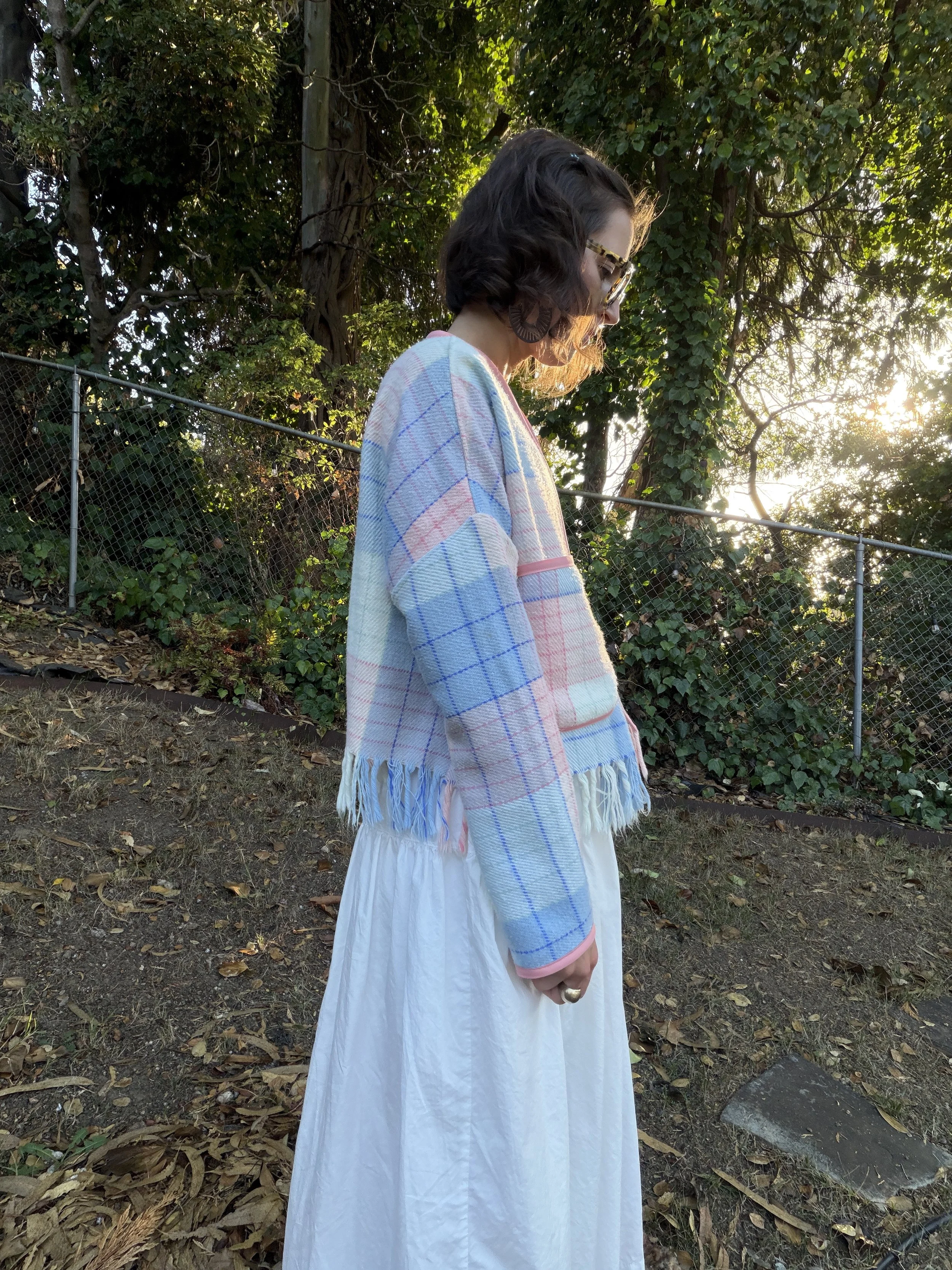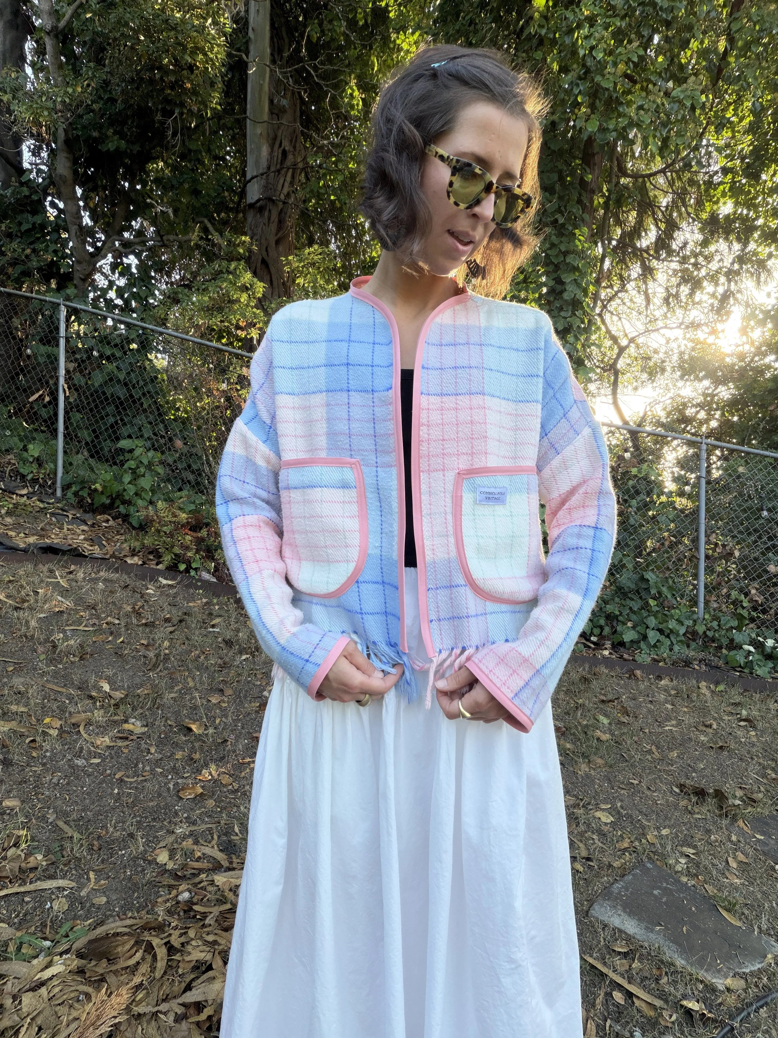 coats Categories: All home accessories hats bags garments appliqué bottoms coats vests sale All / garments / Pink and Blue Plaid Coat, fringe | small $175.00 Dual Bows Coat | medium $205.00 Blue Bow Coat | large $195.00 Dual Bows Coat | small $205.00 Cream Bow Coat | medium $195.00 Twin Blue Bows Coat | small $215.00 Dual Bows Coat | large $195.00 Red Bow Coat | large $185.00 Dresden Plate Appliqué Army Liner Coat | medium $175.00 Blue, Maroon, and Yellow Wool Hannah Coat | large $185.00 Curved 9-Patch Hannah Coat | small $325.00 Irish Chain Hannah Coat | medium $325.00 Curved 9-Patch Evelyn Coat | 2XL $325.00 Butterfly Appliqué Custom Quilt Coat $325.00 Blue and Orange Dresden Plate Custom Quilt Coat $325.00 Floral Appliqué Quilt Coat | Mid-Length medium Sale Price: $225.00 Original Price: $275.00 Sale Dresden Plate Quilt Coat | Mid-Length small $275.00 Waffle Texture Wool Coat | medium-XL $145.00